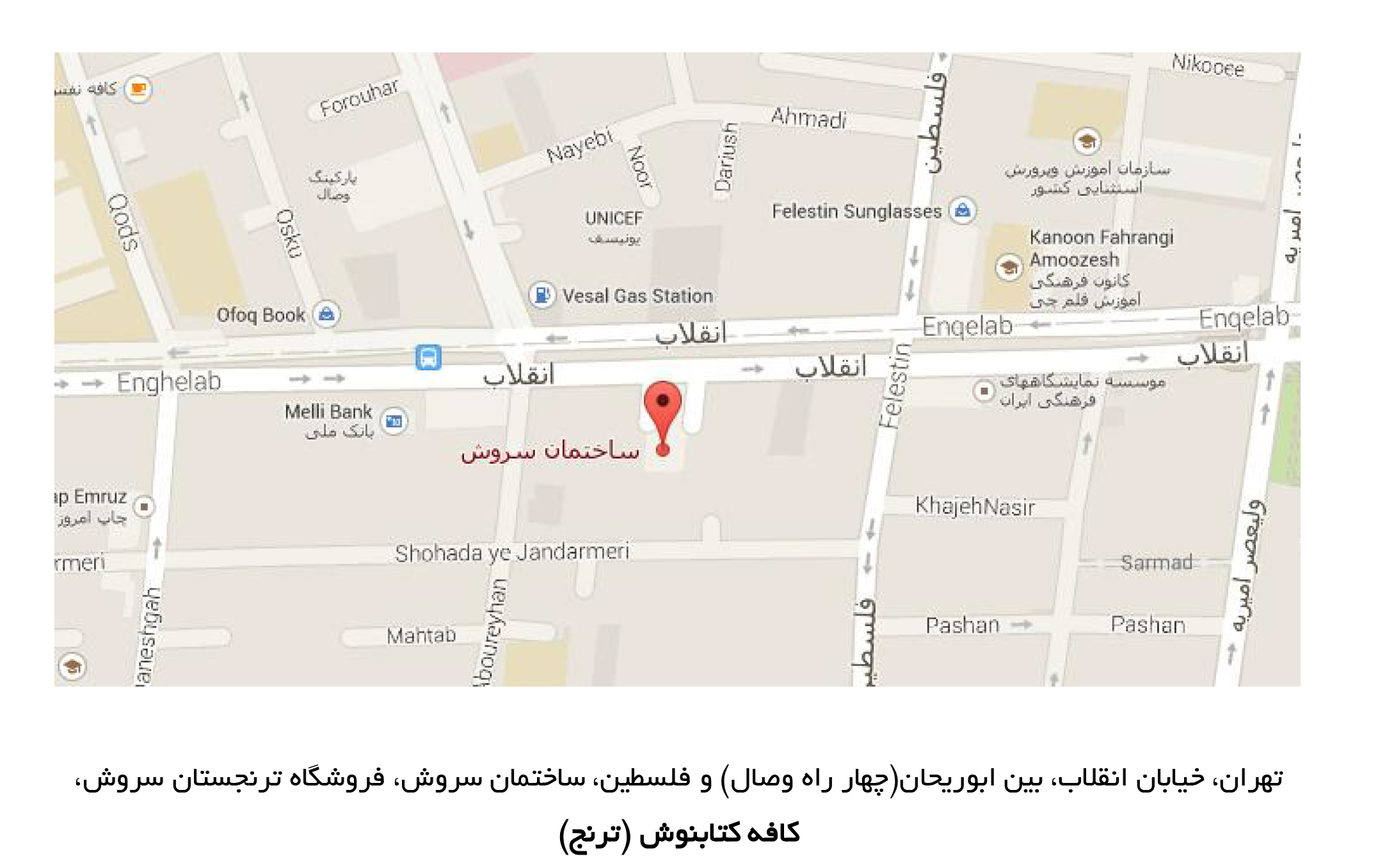 تهران، خیابان انقلاب، بین ابوریحان و فلسطین، فروشگاه ترنجستان سروش،کافه کتاب نوش (ترنج)